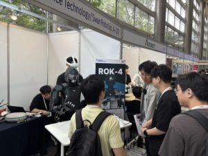 玄教授が6月に滞在した韓国のCho先生のラボでも、新しいヒューマノイドロボットROK4や大小さまざまな脚ロボットが動展示されていました。